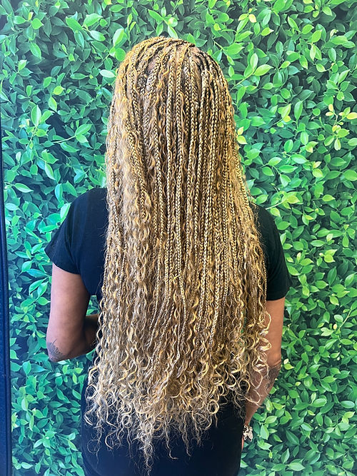 Knotless braids with human curly hair add on ( this price is for mid back)